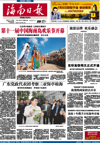 海南日报 首版 001 2010-12-291 2010年12月29日 星期三