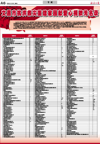 文昌市抗洪救灾重建家园献爱心捐款芳名录