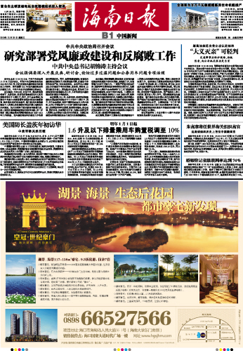 海南日报报业集团旗下媒体: 海南日报 | 南国都市报 | 南海网 | 南岛晚报 | 证券导报 加入收藏 | 设为首页