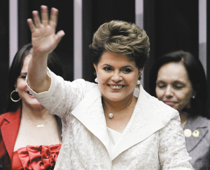 1月1日,巴西新一届总统就职典礼在巴西利亚举行,在总统选举中获胜的劳工党候选人63岁的迪尔玛·罗塞夫正式宣誓就职,成为巴西历史上首位女总统。 新华社/路透
