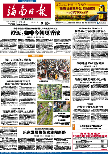 海南日报 头版 001 2011-01-031 2011年01月03日 星期一
