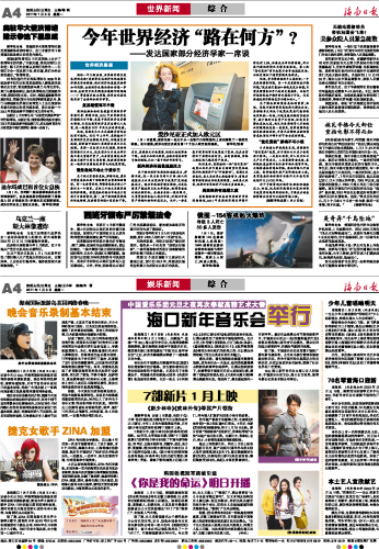 海南日报 世界新闻/娱乐新闻 004 2011-01-031 2011年01月03日 星期一