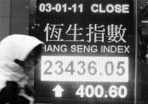 | → 1月3日,香港股市迎来2011年首个交易日,香港恒生指数以23436.05点收市,升400.60点,升幅为1.74%。