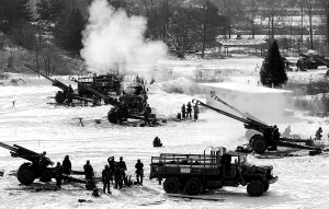 1月3日,韩国士兵在板门店非军事区附近训练。当天,韩国总统李明博发表“新年特别演说”时说,韩国与朝鲜的对话窗口依然敞开。 新华社/法新