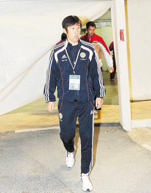| 1月2日,中国男足主教练高洪波在与伊拉克队的比赛后走出赛场。