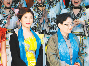 | 刘媛媛(左)与谷建芬在评委席上 |