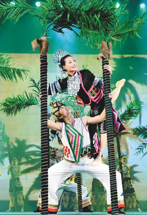| ←→2010年12月,海口市艺术团在省歌舞剧院举行“阳光海南岛———优秀获奖作品专场文艺晚会”,精彩的演出让人对网络春晚更添期待。