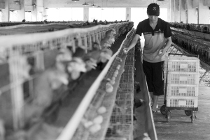 | 近年来,文昌市锦山镇通过“龙头企业带动、政府推动、市场拉动、农民互动、资金滚动”等方面大力发展文昌鸡养殖。目前,该镇年出栏文昌鸡近1600万只,产值达3.2亿元。图为文昌市锦山镇发发种鸡孵化场的工人忙着收鸡蛋。 本报记者 王凯 摄 |
