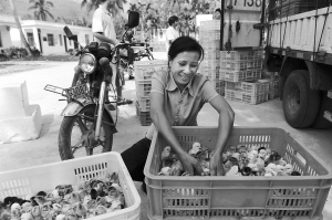 去年11月22日,海南永基文昌鸡有限公司将2万多只鸡苗,免费发放给保亭黎族苗族自治县什玲镇排寮村农民饲养。领到鸡苗,养殖户笑了。 在海南永基公司带动下,保亭县9个乡镇农民成立180个什玲鸡养殖专业合作社,以养殖小区模式规模化养殖什玲鸡。海南永基公司还成立担保公司,为什玲鸡养殖户贷款提供担保。 特约记者 黄青文 摄