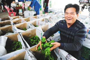 | ← 去年10月水灾过后,受灾严重的琼海菜农在当地政府的政策支持下克服重重困难加紧恢复生产,虽然辣椒上市推迟了近半个月,但长势良好,近日农户开始冒雨采摘供应内地市场。图为1月5日,琼海市一位瓜菜商正在收购辣椒。 特约记者 蒙钟德 摄 |