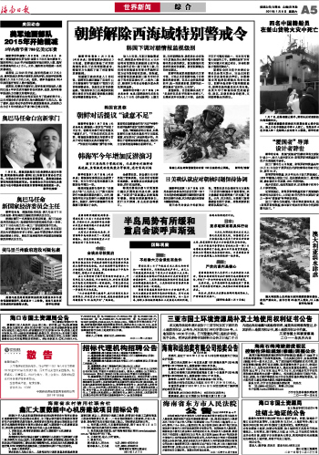 海南日报 世界新闻 005 2011-01-081 2011年01月08日 星期六