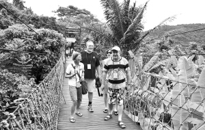 | 外国游客在呀诺达雨林文化旅游区雨林吊桥上穿行。海南日报记者 王凯 摄 |