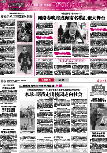 海南日报 2011海南国际旅游岛首届网络春晚/体育新闻 014 2011-01-111 2011年01月11日 星期二