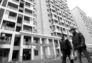 1月12日,居民从出租公寓楼前走过。 经上海市政府批准,上海市七宝镇联明村全体村民集资9300万元,在村里集体建设用地上建设了25700平方米租赁房。2010年6月竣工后,共有400套全装修的一室户和二室户公寓向周边企业的职工出租,出租价格比市场价格低30%。这批被称为“蚂蚁工房”的出租公寓目前供不应求,村民则可以每年从租金收入中获得高于银行贷款利率的分红。新华社发