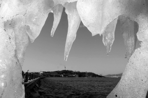 这是1月12日在烟台市海滨广场护栏上的冰凌。 记者从山东省烟台市气象部门了解到,自2010年12月中旬以来,该市平均气温较常年同期偏低1.4℃。受持续低温和冷空气频繁影响,烟台市雨雪天气增加,近海海域海冰面积持续增大,其中莱州湾海冰面积达3000平方公里。 新华社发