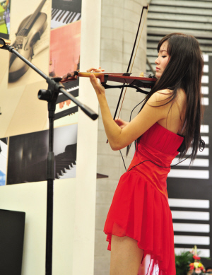 一直以来,小提琴以音色优美、音域宽广、优雅悠扬为人们所宠爱。如果说钢琴是“乐器之王”,小提琴则被称为乐器中的“王后”。本次房展上,美女现场激情演绎小提琴,性感和优雅结合,现代和古典并存,高亢与沉郁同在,为三亚观众奉上一道新年音乐“特色菜”。