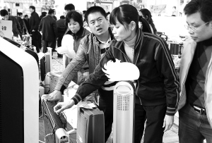 1月11日,几位顾客身穿冬装,正在海口市新华南路挑选电暖器。据了解,从本月5日开始,海口受冷空气影响气温骤然下降,购买取暖电器的顾客一天比一天多。仅信兴电器一家平均每天销售200台电暖器,各商家早已准备了充足库存以保证市民需求。 本报记者 苏晓杰 摄