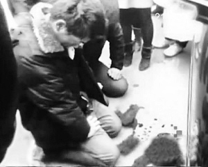 | 小伙在小狗尸体前下跪。 |