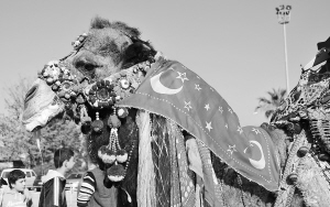 1月15日,在土耳其赛尔丘克,一头骆驼在骆驼选美比赛中亮相。一年一度的土耳其骆驼节当日在爱琴海沿岸古镇赛尔丘克拉开帷幕,32头骆驼参加激烈角逐,争夺为比赛设立的金铃杯大奖。参赛的骆驼全部为公骆驼。 新华社记者陈铭摄