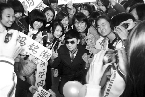 本报讯 (南海网记者赵仕芳 南海网实习记者肖开刚)“铭潮!铭潮!唯你最潮!”1月15日中午12时左右,回琼参加2011海南国际旅游岛首届网络春晚的冯铭潮,刚从北京飞抵海口美兰机场,就见到近百位“超人”高举横幅和写有“冯铭潮”字样的KT板,手捧鲜花热情迎接,更一度造成出口处拥堵。据了解,伊恩、王艺璇、姿娜、蒋银艳、张翔宇、尚雯婕和陈楚生等艺人也于1月15日到达海口。