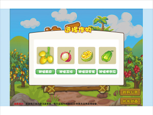 以蓝天和白云为背景,周边是青绿的树林,在火山石围成的篱笆内,有一块长方形的坡地,红褐色的土壤看上去很肥沃。你可以在地里种黄皮、荔枝和菠萝蜜,也可以种佛手瓜,但要跟踪“管理”,否则作物长不大,“积分”也会很少。2010年12月9日,国内首款以农业科技知识普及功能为基础,并结合展示海南热带特色农业魅力的模拟农业生产游戏———《快乐农庄》在海口开通,该游戏所依托的平台为海口市科学技术工业信息化局的“电子农务网”(www.dznw.net),由海南玛雅动漫艺术有限公司开发制作。1个月来,《快乐农庄》的注册会员已有1000多人,他们当中除了善用网络的农民之外,还有不少白领和涉农商旅人士。