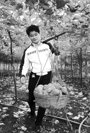 | 50出头的“佛手瓜大王”挑起担子不输小伙。 |