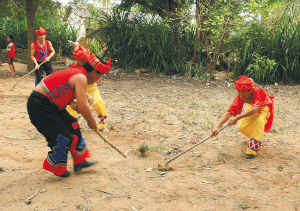 ①打狗归坡是流传于黎族地区的曲棍球运动。