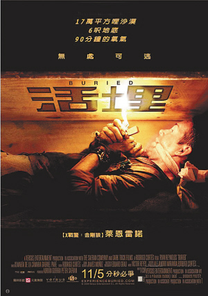 《活埋》的特别之处首先在于故事设置很巧妙,其他同类电影往往局限在变态杀人、灵异科幻、病毒爆发等娱乐性较强的背景之下,而本片讲述的是主人公被伊拉克反美武装装进棺材埋入地下,并勒索赎金的故事。或许电影本身的立意并没有太多的政治指向性,但这个故事却不经意地暴露了伊拉克战争的恶果和国家利益纠葛的复杂性,并且还讽刺了利益公司的丑恶嘴脸,这些都让电影带有了某种现实意义,堪称小格局大视野。《活埋》还把电影中的封闭空间和角色表演都做到了极限,从始至终都是棺材内的单角色表演,剧本的创意堪称独到,单从场景设置上来说,估计很难有电影能超越本片。所以只要有创意,一口棺材也精彩。
