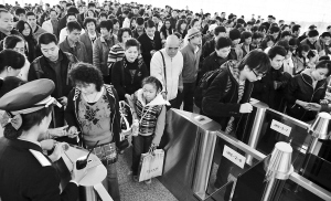 | 十六日上午,旅客在东环高铁海口东站检票闸口进站时的情景。本报记者 古月 摄 |