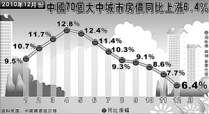 显然,二次调控以来,不仅“限购令”直接限制了市场需求,而且一系列政策直指降价动力不足的开发商,可见力度之大。但从经济环境、政策效应与市场预期的综合结果来看,商品房及住宅价格涨幅回升明显,地价增幅较高。2011年土地及房地产调控压力仍大。