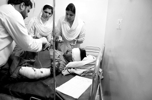 至少18人死亡 1月17日,在巴基斯坦西北部科哈特,一名公共汽车爆炸中的受伤者在医院接受治疗。 巴基斯坦西北部科哈特地区17日上午发生公共汽车爆炸事件,至少导致18人丧生。 新华社发