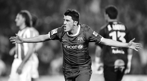 | 1月17日,巴萨球员比利亚在与马拉加队的比赛中庆祝进球。 新华社发 |