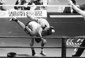 连续两年获得俄罗斯散打冠军的别科特梅诺夫·阿尔斯兰在80公斤级“比武”中不敌腿功了得的“苍山少侠”付高峰。