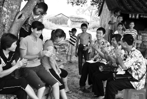 屯昌县枫木镇石岭坡村三位身着岛服的小额信贷技术员在榕树下为村里的妇女培训信贷知识。海南农信联社小额信贷员覆盖全省204个乡镇,实现农民贷款不出镇,农民还款不出村。 本报记者 王凯 摄(资料照片)