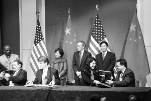 | 1月18日,在美国首都华盛顿,参加中美清洁能源论坛的中美企业正在签署合作协议。 新华社记者 蒋旭峰 摄 |
