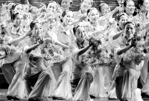 | 演员在表演民俗舞蹈《新坡花帽舞》 本报记者 张杰 摄 |