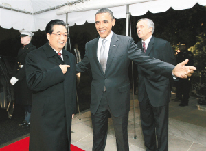奥巴马对胡锦涛来美国进行国事访问表示热烈欢迎。两国元首积极评价中美关系取得的进展,表示愿意通过这次访问进一步推动积极合作全面的中美关系向前发展。