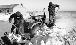 1月20日,内蒙古东乌珠穆沁旗图木图公安边防派出所的干警在帮助牧民挖掘被积雪掩埋的拖拉机。位于内蒙古中东部地区的锡林郭勒盟东乌珠穆沁旗的草原牧区从去年入冬以来连降暴雪,积雪深度平均超过30厘米,是从1999到2000年冬季大雪灾后的又一次特大雪灾。 新华社记者 李欣 摄