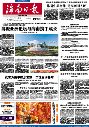 海南日报 头版 001 2011-01-221 2011年01月22日 星期六