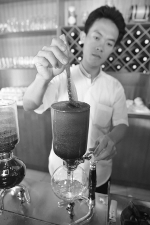| 澄迈侯臣咖啡馆的服务员正在烹煮咖啡。 海南日报记者 王凯 摄 |
