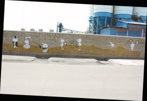 | ↑三亚港务局旧墙涂鸦成为别样风景。 |