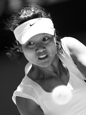 | 1月23日,李娜在比赛中全神贯注准备击球。新华社发 |