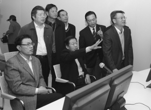| 国家税务总局党组书记、局长肖捷(前排左二)一行在省委常委、常务副省长蒋定之(前排左一)的陪同下观看省地税局税费征管系统演示