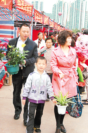 鹿回头广场的迎春花市每天吸引大量的市民、游客参观选购