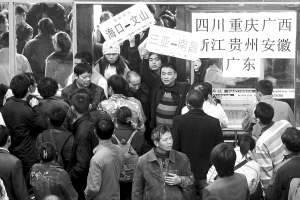 距离春节不到10天,春运也逐步进入高峰。1月25日,海口客运西站,岛外班车验票口人潮涌动。 本报记者 李英挺 摄