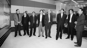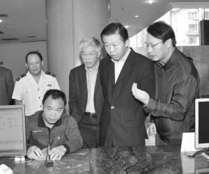 | 肖捷(右二)一行在省委常委、常务副省长蒋定之(右三)陪同下到海南省国税局税收征管监控中心检查税收征管情况。 蒙传雄 摄 |