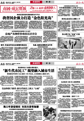 海南日报社新闻信息中心制作维护 地址:海南省海口市金盘路30号新闻大厦 发行部:0898-66810999 广告部:0898-66810888 [