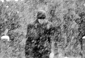 1月25日,在美国纽约,一名路人冒雪前行。 美国纽约市长布隆伯格26日又宣布纽约进入“气象紧急状态”,以应对当日的大范围降雪。 新华社/法新