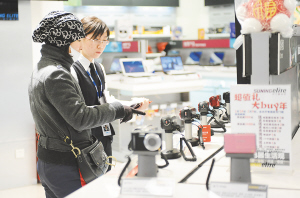 我国下调计算机与数码相机等商品进口税率 1月27日,消费者在北京市一家数码家电商场选购摄像机。 根据海关总署在财政部网站发布的通知称,《进境物品税调整方案》已获国务院批准,当日起实施。其中进境物品税税目税率的调整主要有两点:一是将计算机,视频摄录一体机等信息技术产品和照相机税率从20%降低到10%;二是将“摄像机”更名为“电视摄像机”,而税率维持不变。 新华社发