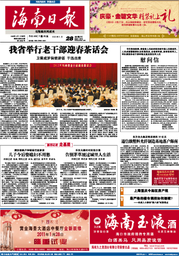 海南日报 头版 001 2011-01-281 2011年01月28日 星期五
